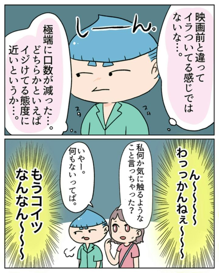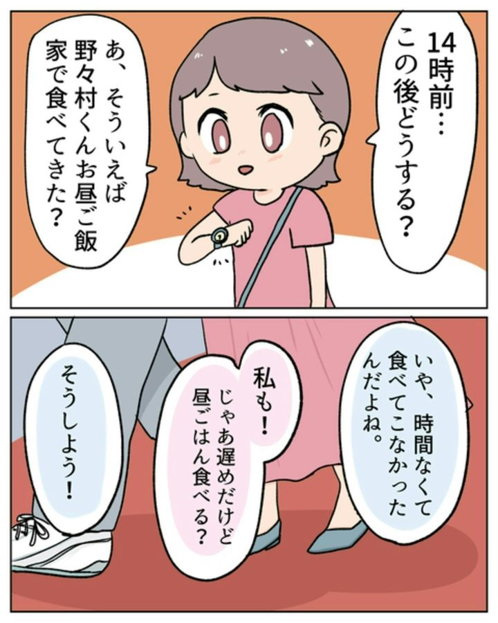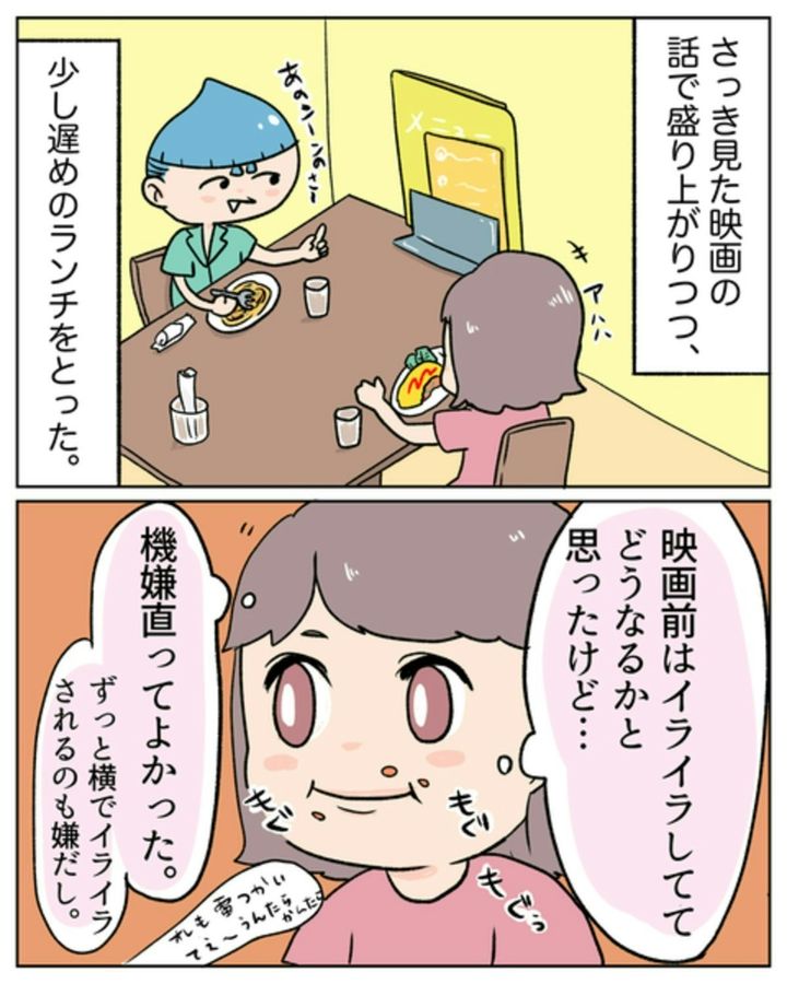 映画そのものは、とても楽しめたようでよかったですね。いつの間にか、野々村くんの機嫌も直っていました。ところが、ランチのあとに、またしても不機嫌に…。原因がわからず、戸惑います。
