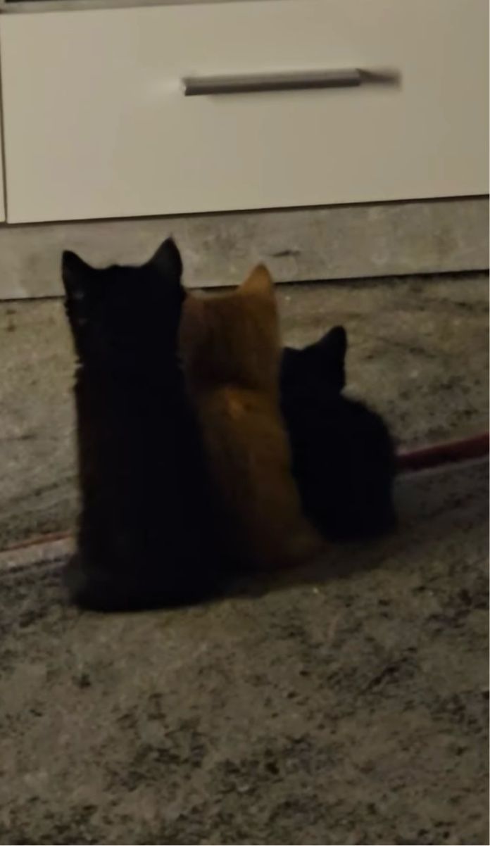 仲良く並んでテレビを観ている子ネコたち。 ぴったりくっついてお団子になっている後ろ姿が微笑ましいです。
