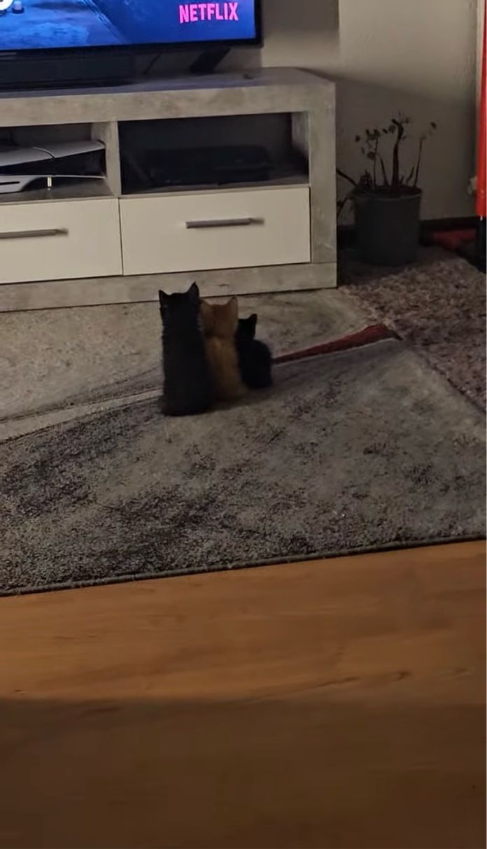 3. 子猫たちが仲良く並んでテレビ鑑賞!ぴったりくっつく後ろ姿がかわいすぎる【海外・動画】