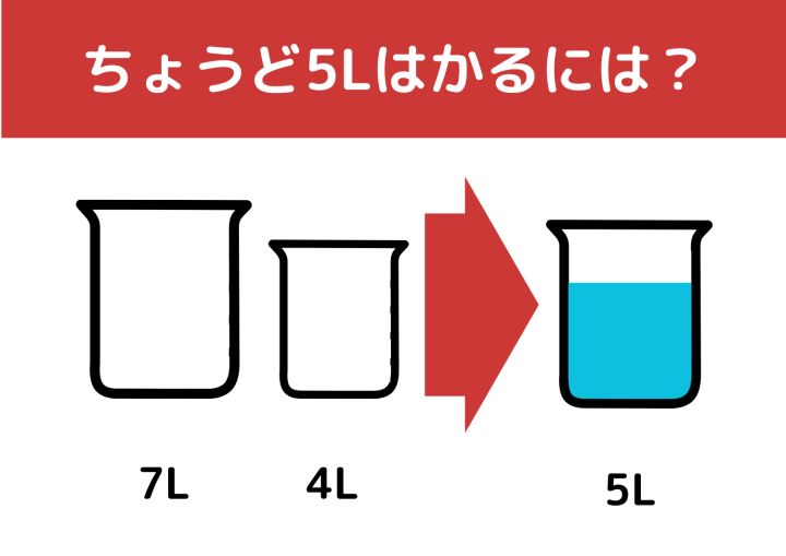 【クイズ】正解できたら一流企業に入社できるかも?「7Lと4Lの容器で5L」をはかるには?