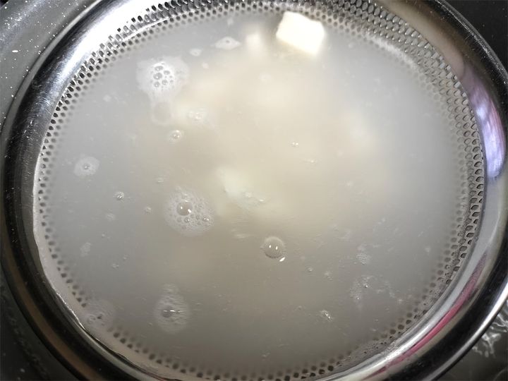 2. 3分経ったところで、同じ鍋にれんこんをザルごと入れます。