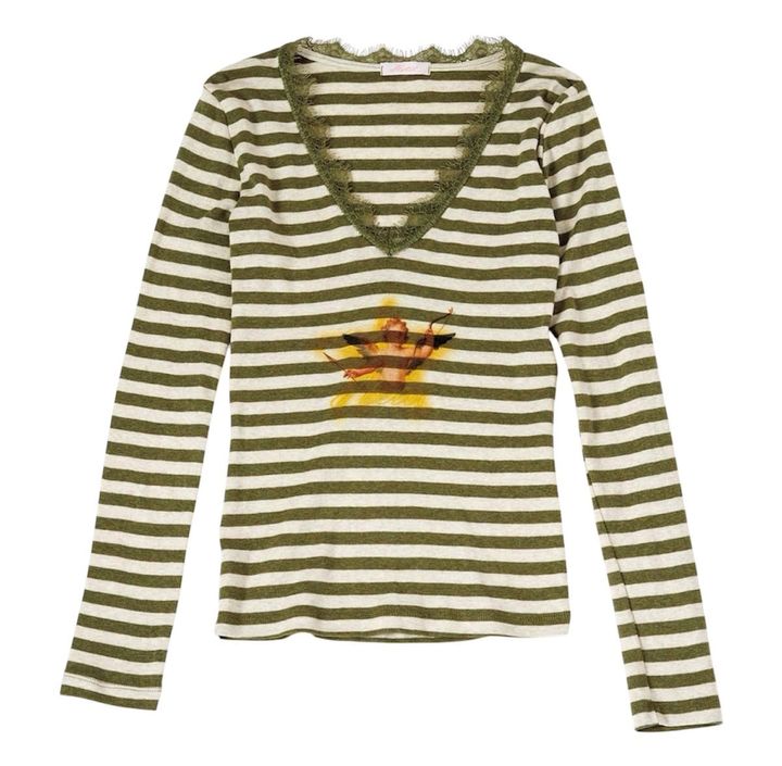 【上から】ビッグシルエットのデニムに大胆なカットオフが、軽やかな抜け感に。[店舗限定アイテム]¥16,600/エヴリス(エヴリス 新宿ルミネエスト店)、ロマンティックなレースやエンジェルのデザインがビンテージ感を高める。¥11,160/へティ(ハナ)
