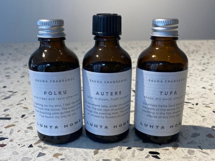 受付の時に早速ワクワクするのは、ロウリュの香りをセレクトできること。フィンランドのブランド「LUHTA(ルフタ)」のアロマを、3種から選べます。3回来ても、3回違う香りを選べば全く異なる気分に浸れます。
