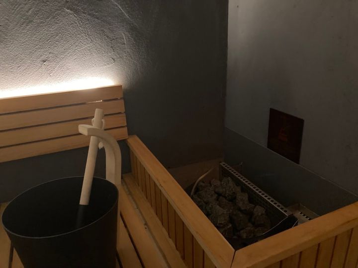 準備を整えていざ、サ室へ。100℃超えですが、苦しくならない湿度高めの快適な熱さ。寝転がれる広さです。160㎝の私は、足もとにバケツを置いても余裕で脚を伸ばせました。15分の砂時計もあります。好きな香りと音楽が広がる空間で、好きな姿勢で楽しめるなんて、なんと贅沢なんだろう! と思いながら、ダラダラの汗をかきました。10分程度を3回と、最後に1回5分程入りました。出たり入ったり自由だから、周囲を気にせず自分のペースで堪能できます。