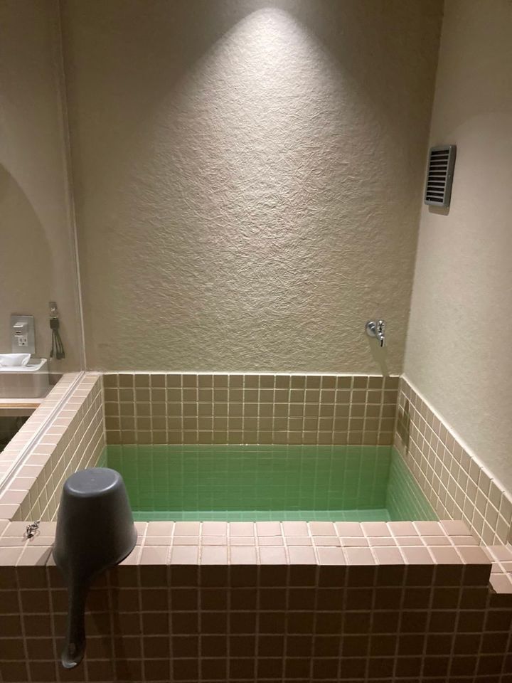 サ室とセットで重要な水風呂。広め、深めです! 水温は外気が暑くなっても、チラーが作動するためしっかり冷たさをキープ。訪れた日は、気温20℃程度でしたが、大満足の冷たさでした。