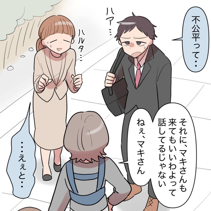 「ハァ・・不公平って・・」とため息をつくゆうさんにはお構いなしに、「それに、マキさんも来てもいいわよって話してるじゃない。ねぇ、マキさん」そう言われて、「・・えぇと・・」と言いながらもハルタくんが心配で仕方がないマキさん。
