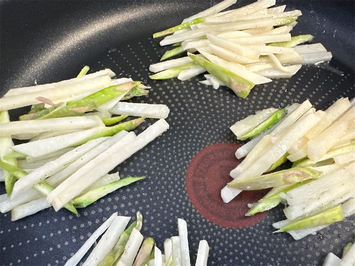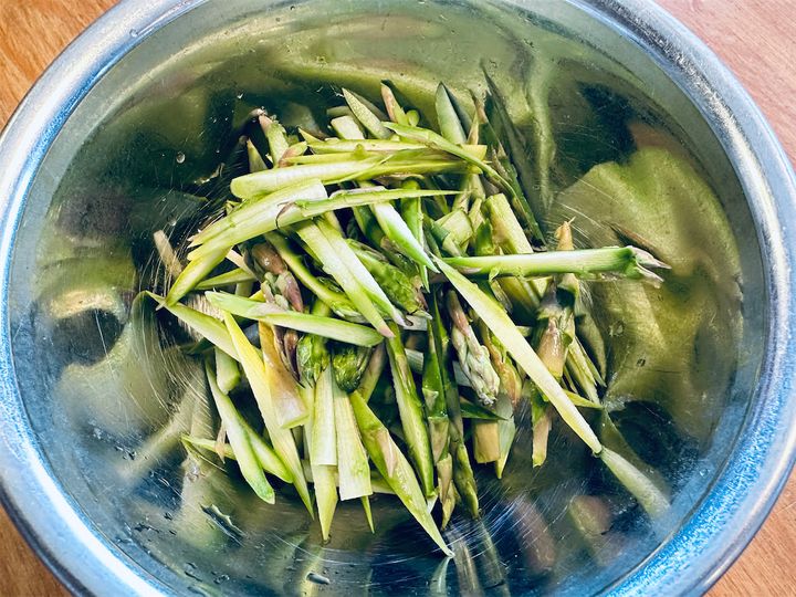 アスパラの風味を活かすため、あまり細く切りすぎないのがポイントです。