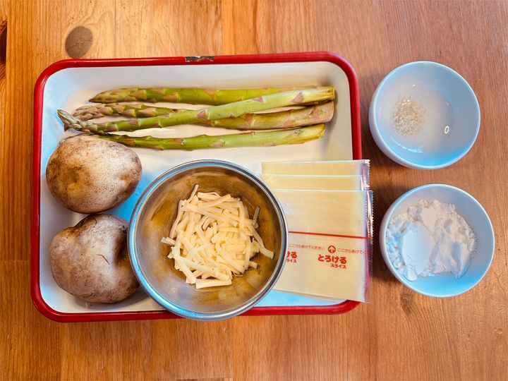 Wチーズで旨味満点♡「アスパラとジャガイモのチーズガレット」材料と作り方