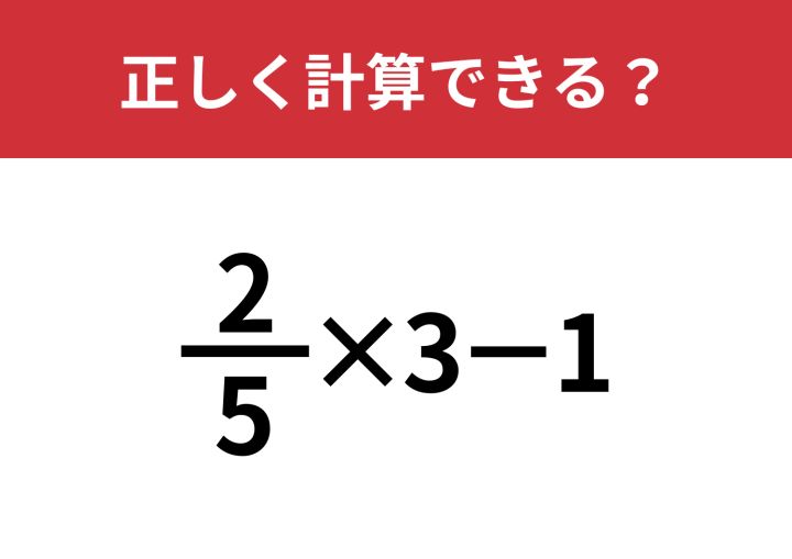 3. 分数の計算は覚えてる?「2/5×3−1」正しく計算できる?