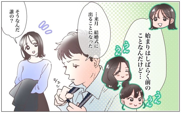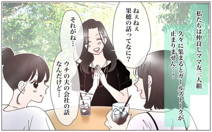 仲良しママ友3人がガールズトーク中、その中の一人、果穂が身近に起きたという信じられないエピソードを話し始めました。果穂の夫・拓也の上司が既婚者でありながら、奥さんとは別の女性と結婚式を挙げるというのです。