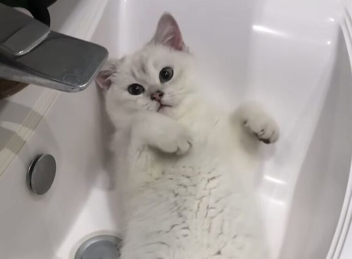 「ここ(洗面所)快適だよ!」と教えてくれているのかな。