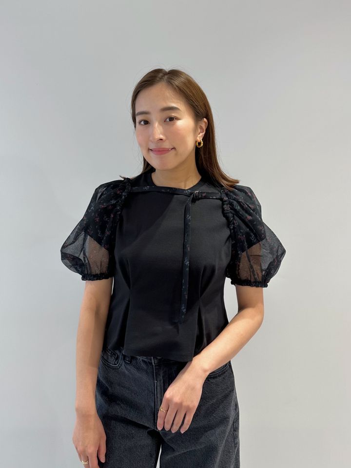 パフッとした袖も、透け感があるので甘くなりすぎず大人女子も着こなしやすい。