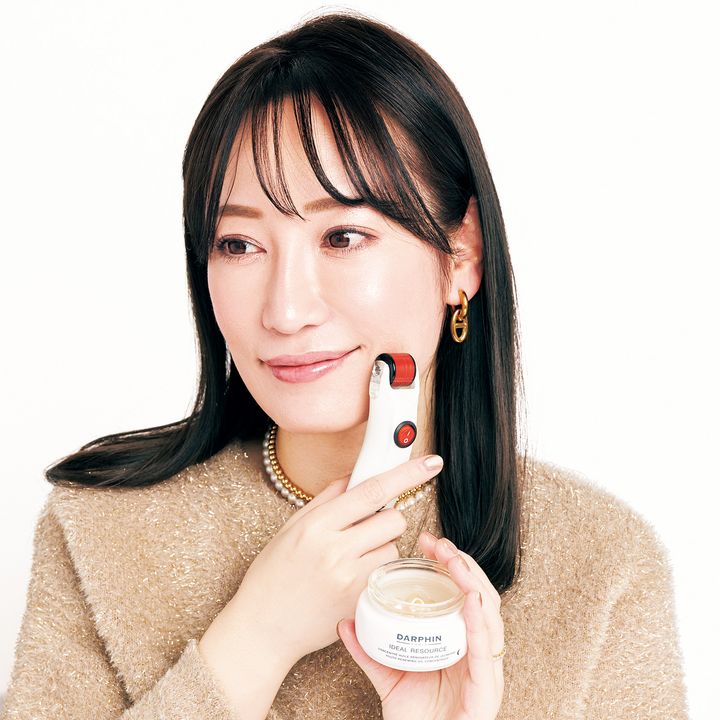 ダルファンの約1万円のクリームを塗布したあと、GENOSYSの電動ダーマローラーをコロコロ。肌のキメが整いツヤもUP。週2回必ず使用。