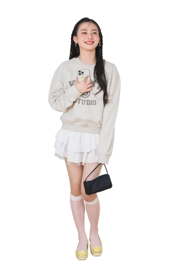 フリルのミニスカートでガーリーな雰囲気を演出♡ きれいめ小物でコーデをアプデ。
