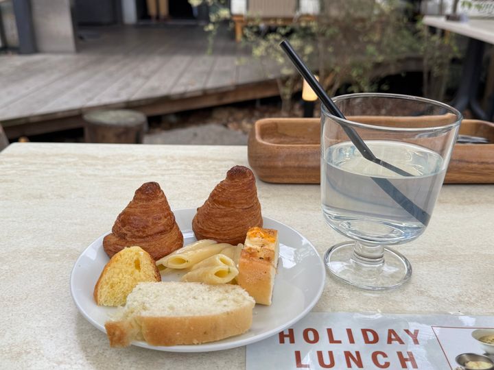 パンビュッフェには複数種のパンとパスタ、3種のドリンクがありました!!