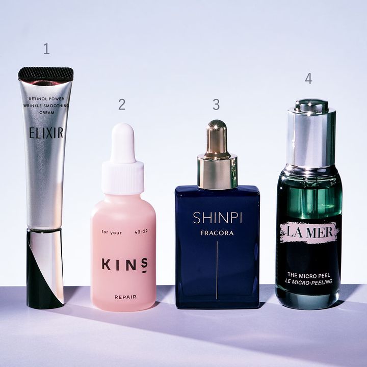 ゆらぎが落ち着き、調子がいいときこそ、「攻め」のケアを。まず、古い角質を落とすことで、次に使用するスキンケアの浸透を高める「角質ケア」の投入を。そして、肌が本来もつ美しさを引き出すヒト幹細胞培養液、肌のターンオーバーを促し、真皮のコラーゲン産生を活性化するレチノールやバクチオールなど、エイジング対策が叶う成分を取り入れて、健やかで美しい肌を手に入れて。