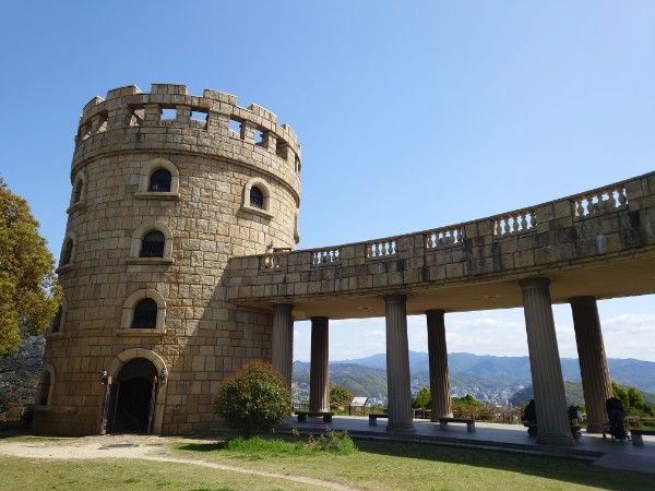 次は展望塔、展望塔広場を目指します。また坂道を駆け上がっていくとすぐ見える大きな展望塔を目指します。公園の一番高い位置にある展望広場に到着です!景色がとっても良いのです!