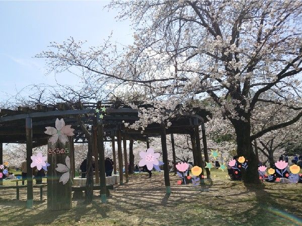 「さくらの丘」へ到着!さくらが綺麗で風が吹くとはかなくハラハラ舞い散る花びらがまた素敵です!