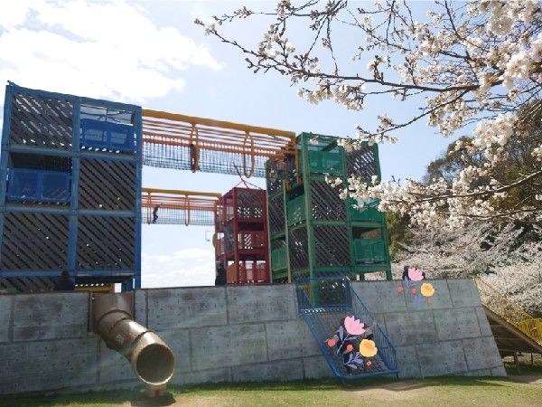 広々した芝生の広場にレジャーシートを広げてレッツお花見です!大人はゆっくり桜を楽しみたいところですが、子どもは坊っちゃん夢ランドの遊具の方へ一目散に! 迷子になったらここに集合という場所を決めてまたまた追いかけっこ、中々立派な遊具ですし大人は狭くて入れない遊具もあるので昔、何度見失ったことか、見守りながら楽しく遊びます!