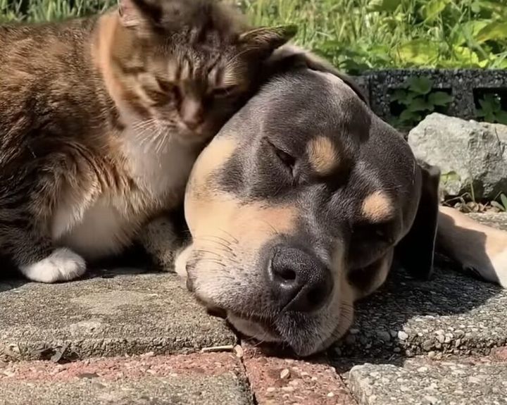 ひとりより、ふたりがいいね♡ 寄り添って眠る犬と猫