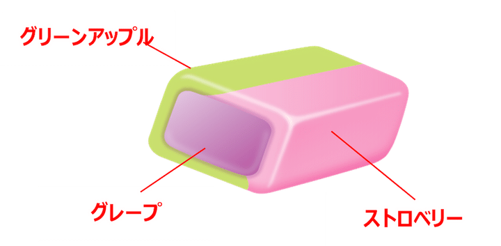 あの定番の3つの味、ジューシーなグレープ、甘酸っぱいストロベリー、爽やかなグリーンアップルが、ぜ~んぶひと粒になっちゃったんです!