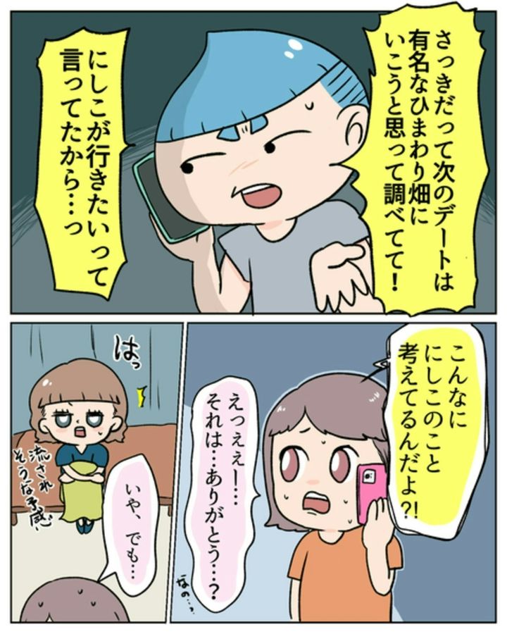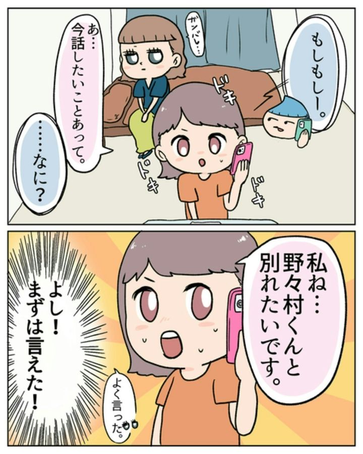 さらに、別れを伝える際、流されやすいにしこさんのことを心配して、先輩がそばで見守ってくれることに。そしてさっそく、仕事終わりに野々村くんへ電話をかけます。