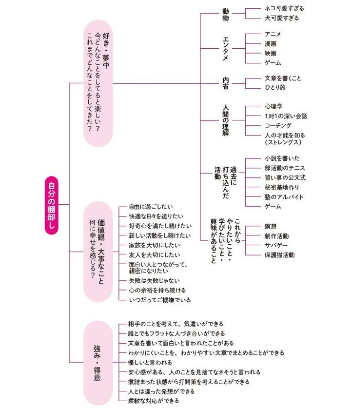 今、実際に書いてみたらスカスカで絶望した……という方もいるかもしれませんが、それでも大丈夫です。現時点で完成している必要はなく、これからドンドン完成に近づけていけばいいのです。まずはこの土台を作り、定期的に見返して、思いついたものがあれば追記してみると良いでしょう。