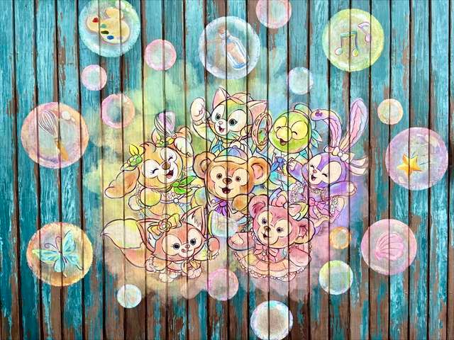 お店の目印は、20周年を記念して描かれたダッフィー&フレンズの壁面アート!