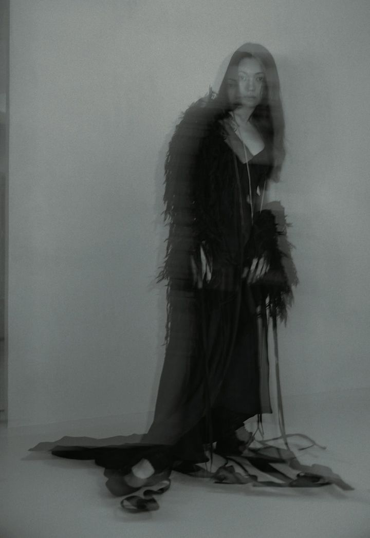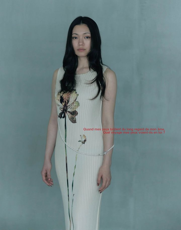また、撮影中私が感じたのは、UDAさんが色を通して私の人間性を見抜こうとしていることでした。メイクは単なる装飾ではなく、私という存在を深く掘り下げ、引き出される感覚がありました。まるで藤田が女性を描くときのような、細やかで愛情がこもっているかのように。撮影前にもたくさんお話しさせていただけて、改めて人と人とが直接向き合って、深く語り合うことの豊かさを感じられた撮影でした」