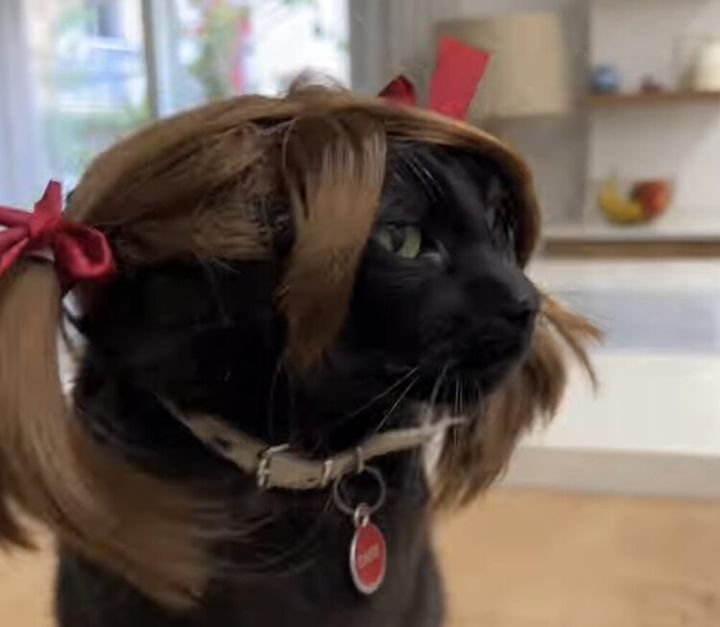 この髪型どう? 飼い主さんのお遊びに優しく付き合う猫さん