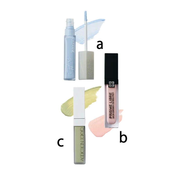 色ムラ部分だけにポイントで使って、全体のトーンをならせば完璧な1枚肌に。赤み、くすみ、トーンアップなど目的別で色選びを。