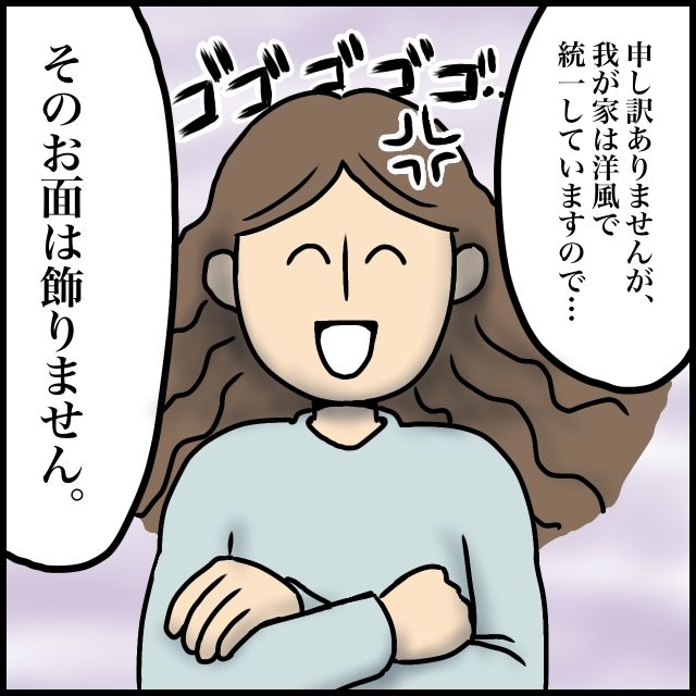 「申し訳ありませんが、我が家は洋風で統一していますので・・そのお面は飾りません」