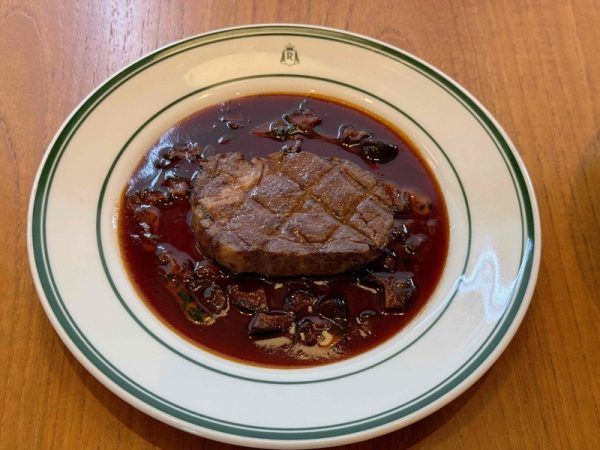 黒毛和牛のヒレステーキをミディアムレアで丁寧に焼き上げた逸品です。コンチネンタルロイヤル伝統のきのことエシャロット、赤ワインで作る シャスールソースを添えてあります。 シャスールソースがかかった和牛は、食べごたえがあって、食べて幸せな気持ちになりました。