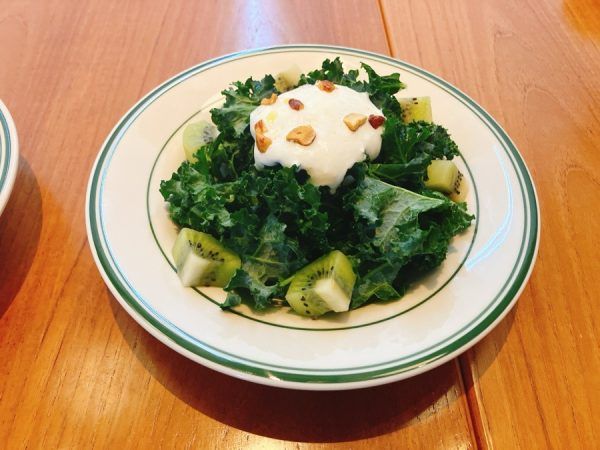 「ケールとキウイのサラダ ヨーグルトソース」