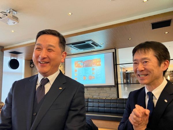 まず、店舗を運営するロイヤルコントラクトサービス株式会社代表取締役社長・佐々木貴央氏と「THE CONTINENTAL ROYAL &   Goh」支配人の在國寺隆一氏から、お店のコンセプトやメニューについてのお話がありました。