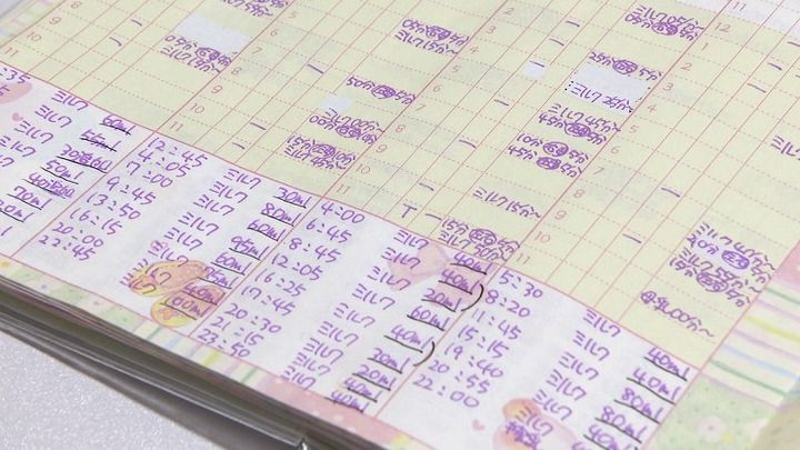 毎日、ミルクの量や回数など書きためた日記はこの日で一区切り。