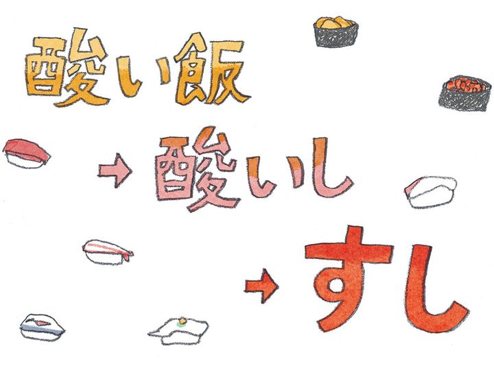 鮨は東南アジアから中国に伝来し、“鮨”や“鮓”と書物に著されてきた。それが“すし”になったとして有力なのが「酸っぱいから、すし」という説。