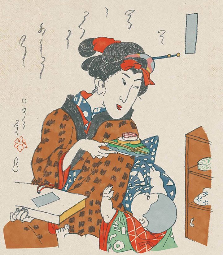 しかし江戸時代の鮨はいまよりも気軽な食べ物。サイズはいまの約2.5倍(45g)もあったという。とてもひと口では食べられず、現代のおにぎり感覚だったのではと推測される。