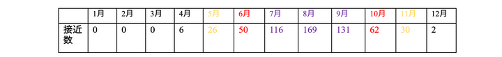 ・1年~2年に平均1回のペースで台風が接近している月:6月、10月