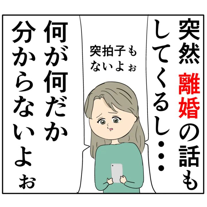 「突然離婚の話もしてくるし・・突拍子もないよぉ。何が何だか分からないよぉ」