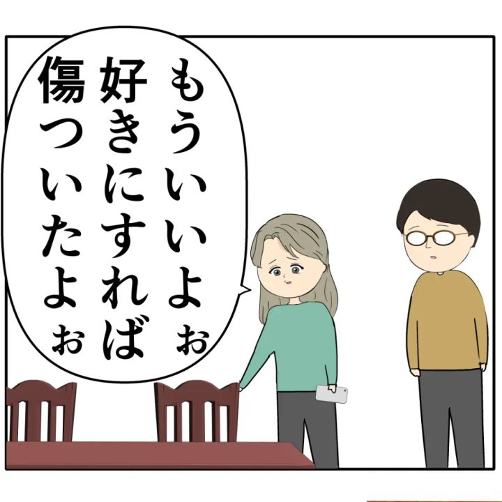 「もういいよぉ好きにすれば。傷ついたよぉ」ジュリ実さんはそう言ってダイニングテーブルへ。