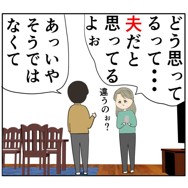ジュリ実さんに「一緒にいてもジュリ実が苦しかったら何のための夫婦かわからない」「あとジュリ実は俺の事どう思ってる?」めが根さんがたずねると、「どう思ってるって・・夫だと思ってるよぉ。違うのぉ?」と答えるジュリ実さんに「あっ、いやそうではなくて」めが根さんが言いました。