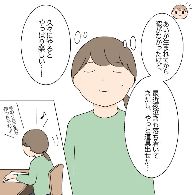 「あいが生まれてから暇がなかったけど、最近夜泣きも落ち着いてきたし、やっと道具出せた・・」と感慨深いかなえさんは、「久々にやるとやっぱり楽しい・・!」そう思い、「今のうちに色々作っちゃお!」とワクワクしていました。