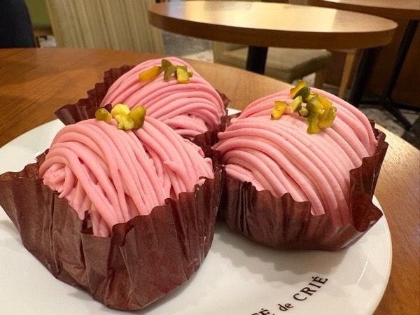 春色のモンブラン?!ケーキ?!わくわく度上がる。どれにしようかなぁ。
