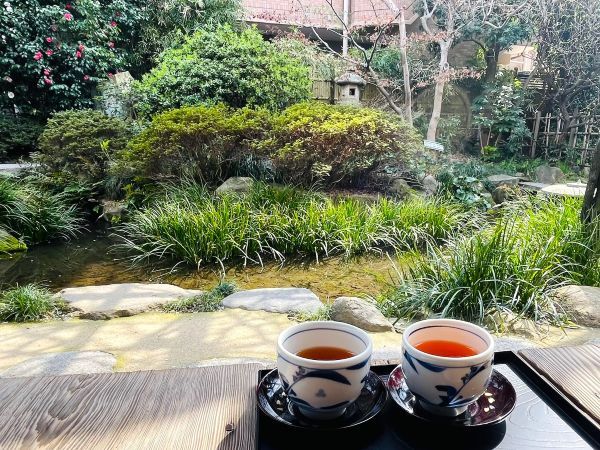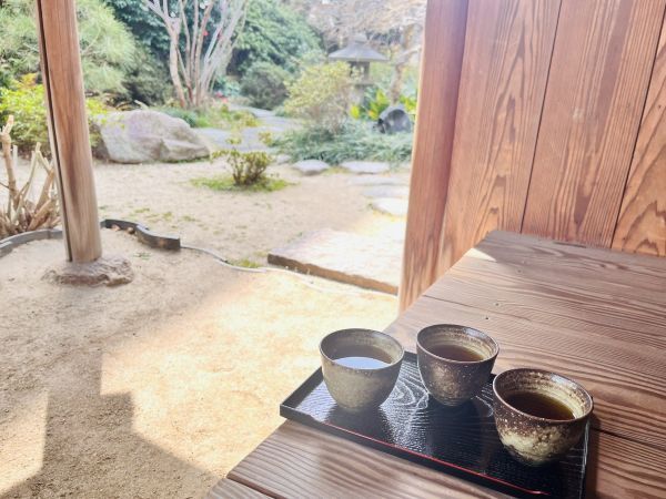毎週土曜日11:00~14:00は「まいどなお茶会」が開催されています(ふじまつり期間中等お休みの時もあり)。お茶に全く馴染みがない私たちでも、気軽に味わうことができました。縁側など好きな場所でいただけるのもまた嬉しいポイントです。(お茶菓子付き1杯400円)