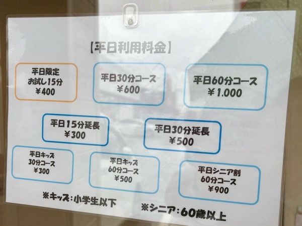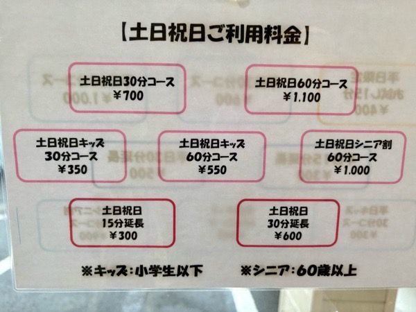 土日祝日の料金も、良心的な金額です。お支払いは現金のみで、入店前に自販機で清算するシステムです。新札や新500円玉は利用できないので、ご注意ください。