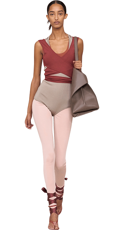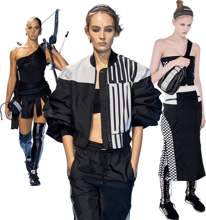 アーチェリーにインスパイアされたコレクションを披露したディオール、スポーツウェアをラグジュアリーにアップデートさせた着こなしで魅せたミュウミュウ、バレエの練習着に着想を得たフェラガモ、カクテルドレスにウィンドブレーカーを合わせたプラダ、レギンスパンツを装飾的なジャケットでマッシュアップしたルイ・ヴィトン、リアルクローズなポロシャツをキャットウォークに相応しい華やかなムードで登場させラルフローレン、レトロスニーカーをロマンティックな花柄ドレスに合わせたロエベ、ナイキのブラトップやスイムウェアをインに着たセンシュアルなルックが多くの女子の共感をさらったジ・アティコ……、例を挙げればきりがないくらい多くのデザイナーたちが、スポーツ&アウトドア要素をミックスしたスタイリングを提案! この影響で、これまでも人気だったこのテイストが、より洗練されネクストステージに進化。