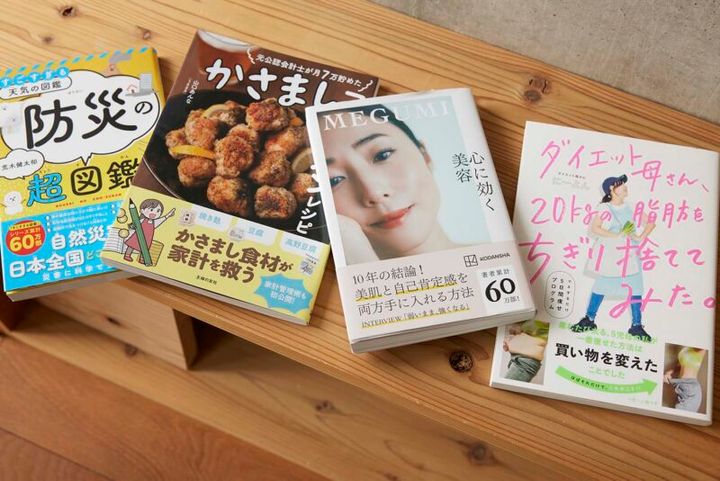 『防災の超図鑑』、家計に役立つ『かさましレシピ』、MEGUMIさんの『心に効く美容』、にーよんさんのダイエット本『ダイエット母さん、20㎏の脂肪をちぎり捨ててみた。』などさまざまなジャンルの人気書籍をPR。