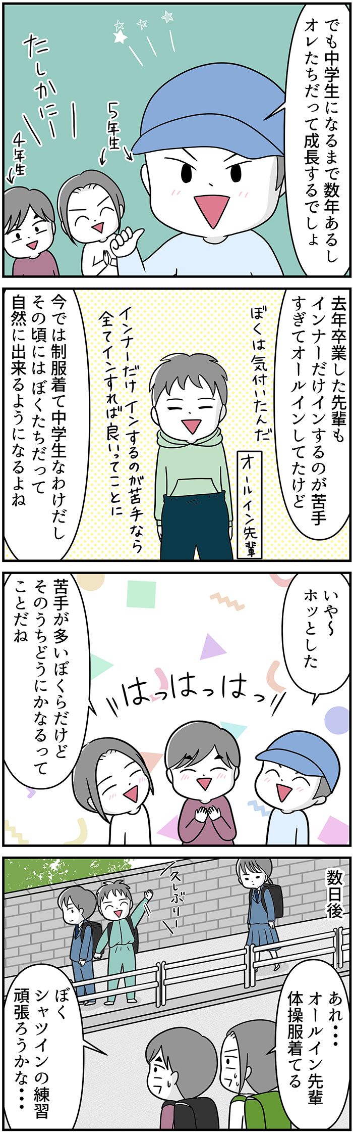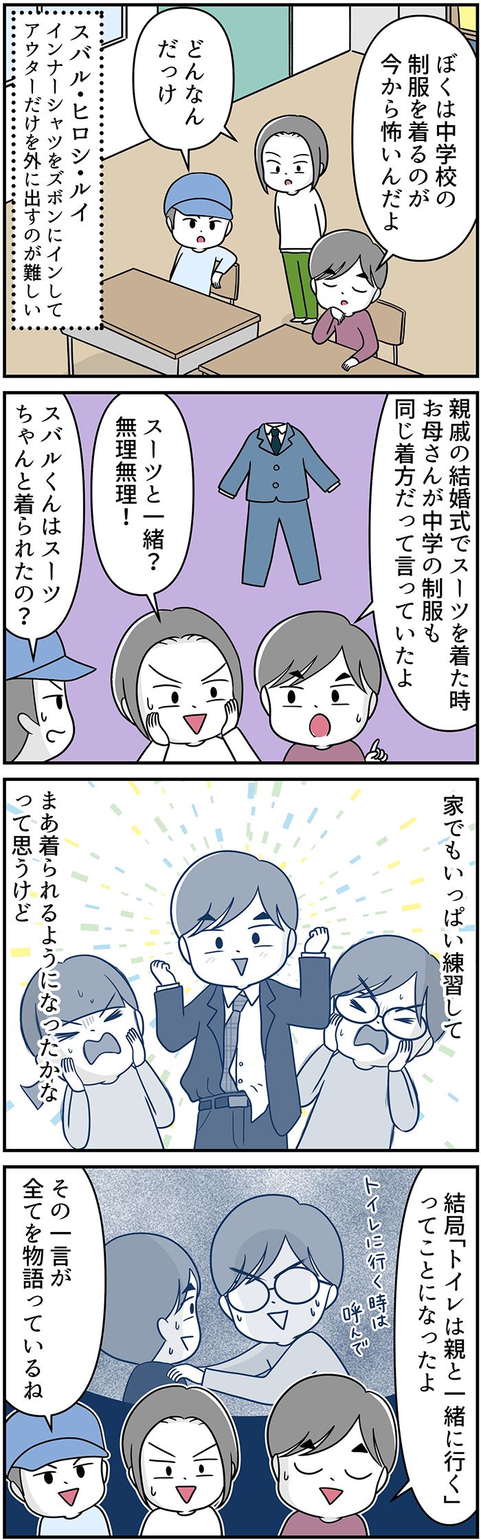 シャツインが苦手な特別支援学級のスバルくんたち。中学生になったら制服着れるかな? ちなみに、支援学級の先輩は今…【自閉症BOY★スバルくん・111】