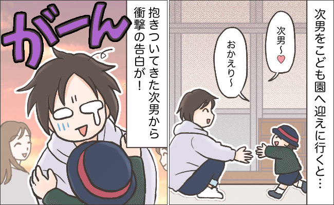 次男を子ども園へお迎えに行った私。まさかそんなタイミングで、衝撃的なダメージを受けるとは思ってもいませんでした…。